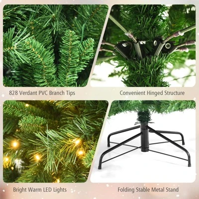 Our pre-lit artificial Christmas tree is an ideal addition to both residential and commercial places. Luxuriant appearance and verdant leaves make feel like in real natural world. The Christmas tree with pre-strung LED lights provides warm lighting show at home. An extra convenient pedal switch for you to control 8 different flash modes. Thanks to one-pole powered design, there is no need to connect electric strings anymore. 3 hinged sections make the tree easy to assemble, and the sturdy metal stand firmly supports tree in an upright position. Let this hinged realistic tree decorate your home, wishing you have a happy and peaceful Christmas season with family.
