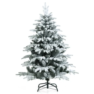 - Classic Pre-lit Snowy Xmas Tree: This 4.5ft artificial Christmas tree that designed into classic style could be used in various occasions. The full-bodied Xmas tree with snow flocked branch tips looks as lifelike and natural as a real pine tree. Comes with no extra ornaments, the tree allows you to decorate it with your favorite ornaments.