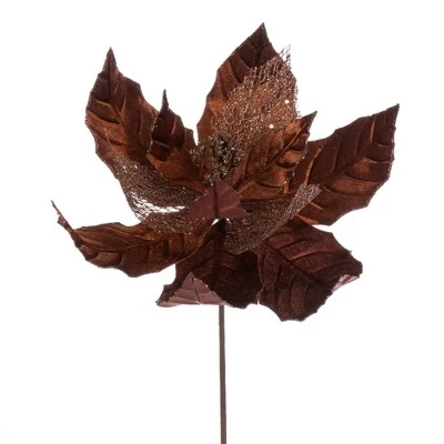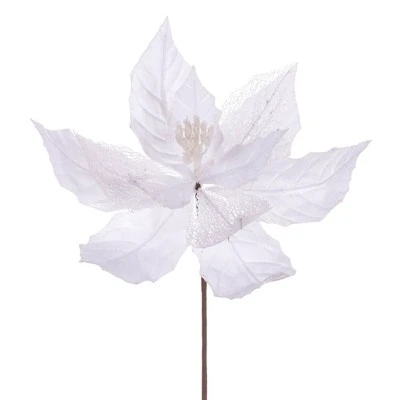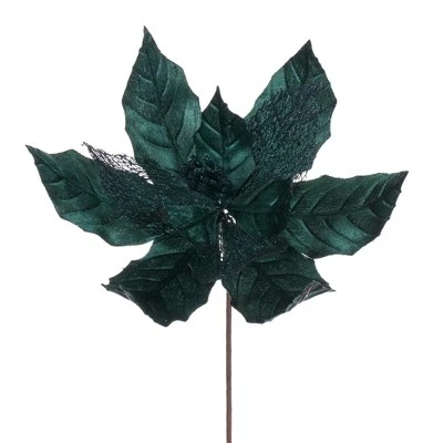 Vickerman 11″ Velvet and Glitter Mesh Poinsettia Flower on Stem. Includes 6 pieces per bag. Each Stem measures 11 inches from top to bottom.