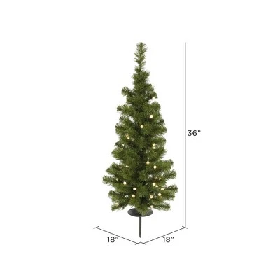 Vickerman Solar Artificial Christmas Tree with PVC Tips. This solar powered tree features traditional PVC tips and 30 warm white LED lights. It includes a metal stake to secure the tree into the ground and a solar panel.