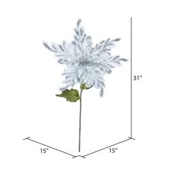 Vickerman 31″ Velvet Poinsettia Aritificial Christmas Pick. This sparkling floral Pick is made of durable Polyester, has a velvety textured 15″ flower head, a paper wrapped wire stem, and features brilliant glitter accents. Includes 3 pieces per pack.