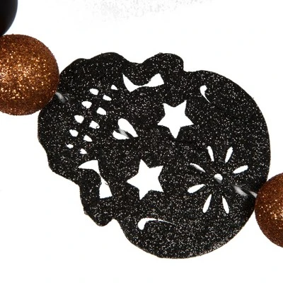 Vickerman 6′ Halloween Garland. It features a mixture of ornaments and motifs. It measures six feet in length and has String loops at each end for hanging.
