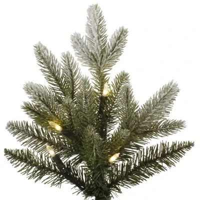 Vickerman Frosted Balsam Fir Artificial Christmas Tree featuring PE/PVC Tips. This realistic tree is made with a beautiful blend of frosted PE and PVC tips on metal hinged branches, a tree stand is included.