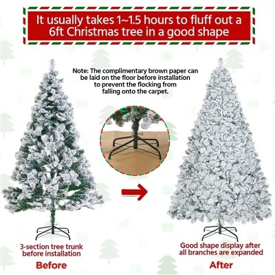 - 【Easy and Time-Saving Structure】The Christmas tree is constructed with a hinged system, where the branches are pre-attached to the trunk. This allows for quicker setup and ensures that all branches stay securely in place both during packaging and assembly.